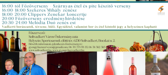 - július 5-én, szombaton délután 16 órától rendeztük meg a Bor és Gasztro Estet, a Sportcsarnok melletti fűzfás téren. A rendezvényt Temerini Ferenc polgármester úr nyitotta meg köszöntő beszédével.