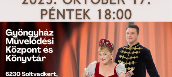 2025. október 17- én a Gyöngyházban láthatták az érdeklődők Oszvald Marikát és Peller Károlyt nagy létszámú nézőközönség előtt. A siker és a jó hangulat borítékolható volt. Marika közvetlensége, emberszeretete megtöltötte a színháztermet és egy nagyon jó hangulatú, derűs estnek lehettek részesei vendégeink. Tovább…