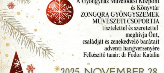2025. november 28- án , 18 órakor Adventi Hangversenyt adott a Zongora Gyöngyszemek Művészeti Csoport növendékei a Gyöngyház Művelődési Központ színháztermében. Beszámolónkat a Vira tudósításából olvashatják!