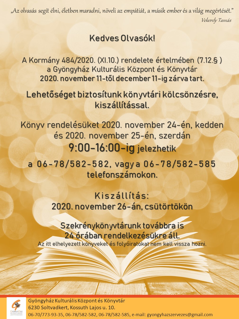 Gyöngyház Művelődési Központ és Könyvtár Soltvadkert   I   Adatvédelem I   Cookie tájékoztató