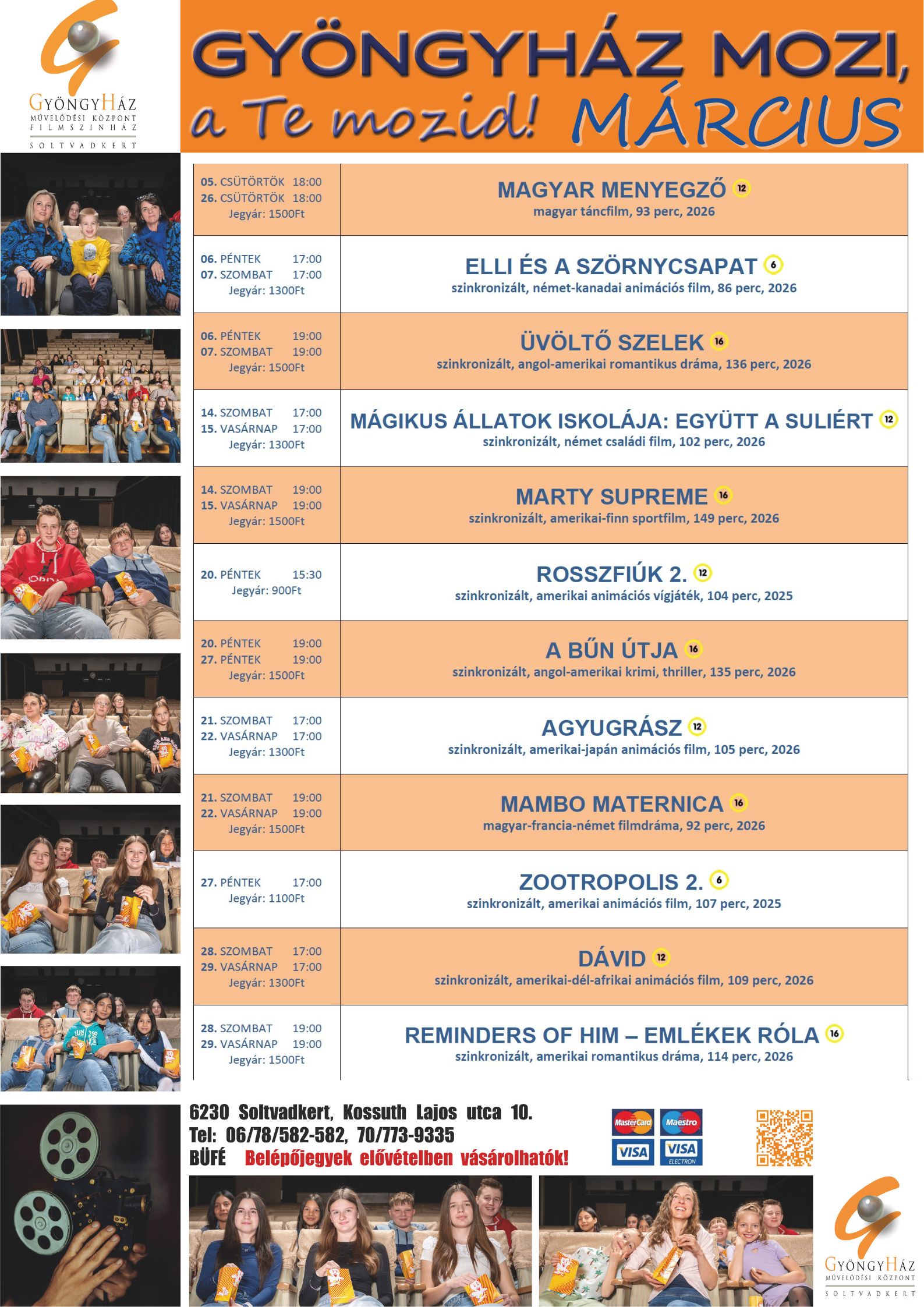Márciusi Moziműsor február 24, 2026 Friss híreink, Gyöngyház Mozi Márciusban is szeretettel vár mindenkit a Gyöngyház Filmszínház! Related Post navigation ← P.Szabó Mária könyvbemutatója Óvodások látogatása a könyvtárban →