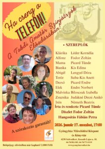 Ha cseng a telefon! vígjáték a Tabdi Amatőr Színjátszók előadásában 2026. január 17- én, szombaton 17 órakor! Jegyek elővételben a Gyöngyházban kaphatók! Jegyár: 2000ft/fő