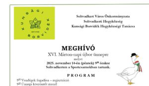 Márton -napi újbor ünnepe a Városi Sportcsarnokban 2025. november 14- én, pénteken 9 órától. Minden érdeklődőt szeretettel várnak a szervezők!