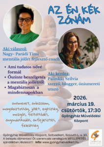 AZ ÉN KÉK ZÓNÁM- előadás az önbizalomról, önfejlesztésről március 19-én, csütörtökön 17:30- kor a Gyöngyházban. Előadó: Nagy- Parádi Timi, Moderátor: Pálinkás Szilvia. Az előadás díjmentes!