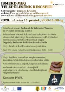 Március 13-i programcsokrunk: Ismerd meg településünk kincseit!- Helyi alkotók termékbemutatója kóstolóval, Települési Értéktár kincsei- Kerékpáros Pumpapálya átadása, Ünnepi megemlékezés és koszorúzás, Szőlészeti Gazdakonferencia