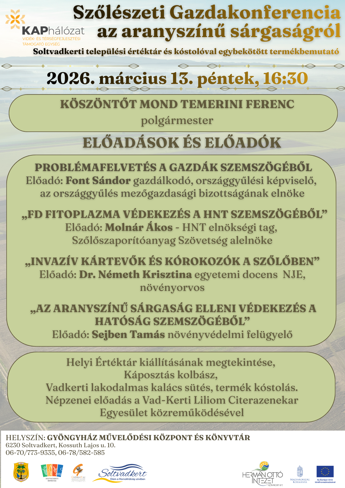 Helyszín: Gyöngyház Művelődési Központ Soltvadkert, Kossuth L. u. 10.