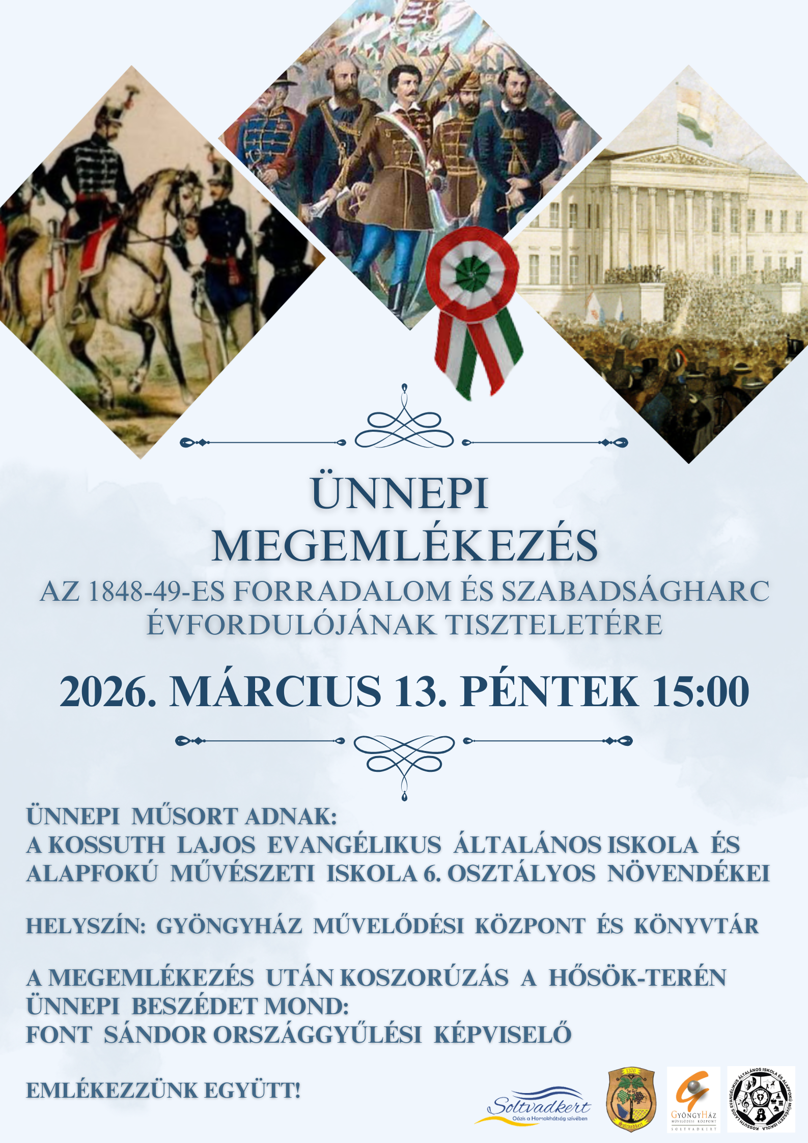Október 22. szerda, 17:00 ÜNNEPI MEGEMLÉKEZÉS AZ ’56-OS FORRADALOM ÉS SZABADSÁGHARC ALKALMÁBÓL
