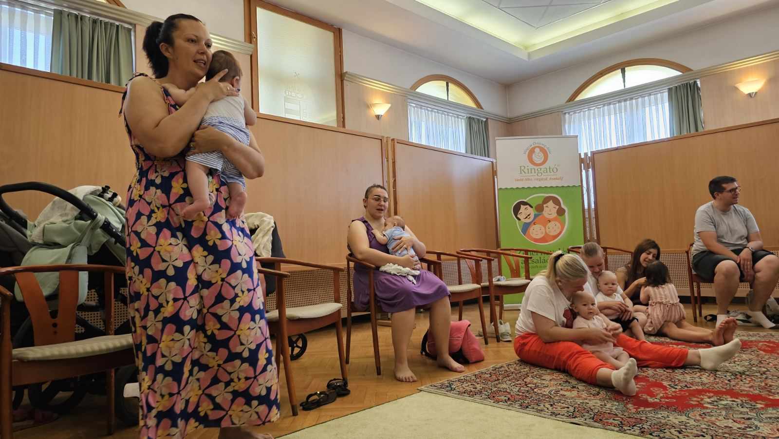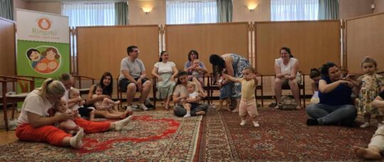 Június 4-én, szerdán 10 órától Ringató éneklős, játékos, zenés foglalkozást tartottunk a Gyöngyházban. A foglalkozásra nagy volt az érdeklődés, a résztvevő picik és szüleik mosolyogva követték a foglalkozásvezető: Vadai Henrietta útmutatásait.